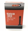 Прочная бутилкаучуковая камера CST для детских и складных велосипедов, тележек, колясок и самокатов. Обладает размером под колеса 18" и, за счет хорошей тягучести резинового состава, диапазоном ширины - от 1,75" до 2,125". Ниппель прямой, стандарт AV, рассчитан для установки с ободами под автомобильный ниппель (Schrader). Ниппель хорошо удерживает давление, резиновый состав имеет толщину стенки 0,87 мм, устойчив к проколам и легко поддается заклейке. Камера рассчитана на посадочный размер 47/57-355.